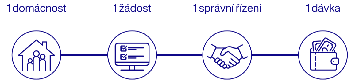 Místo čtyř žádostí podá domácnost jen jednu, kterou je možné vyřídit i online z pohodlí domova. Požádat o dávku může kterýkoliv zletilý (plně svéprávný) člen domácnosti.